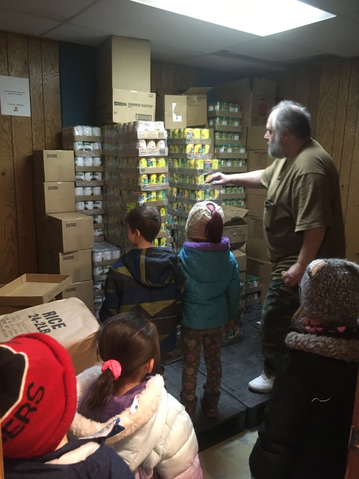 Then it was off to the Food Bank, to see what donations are used for. Ms. Jean and Mr. Terry are Food Bank volunteers who met us there and helped the kids "shop" for food, as if they were families coming to the Food Bank. The kids had so much fun!